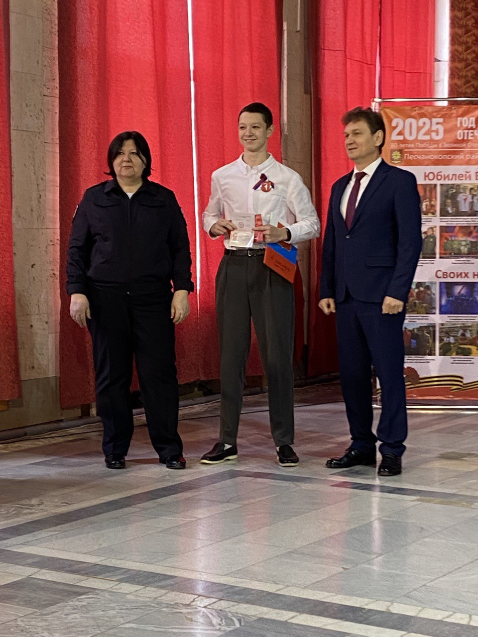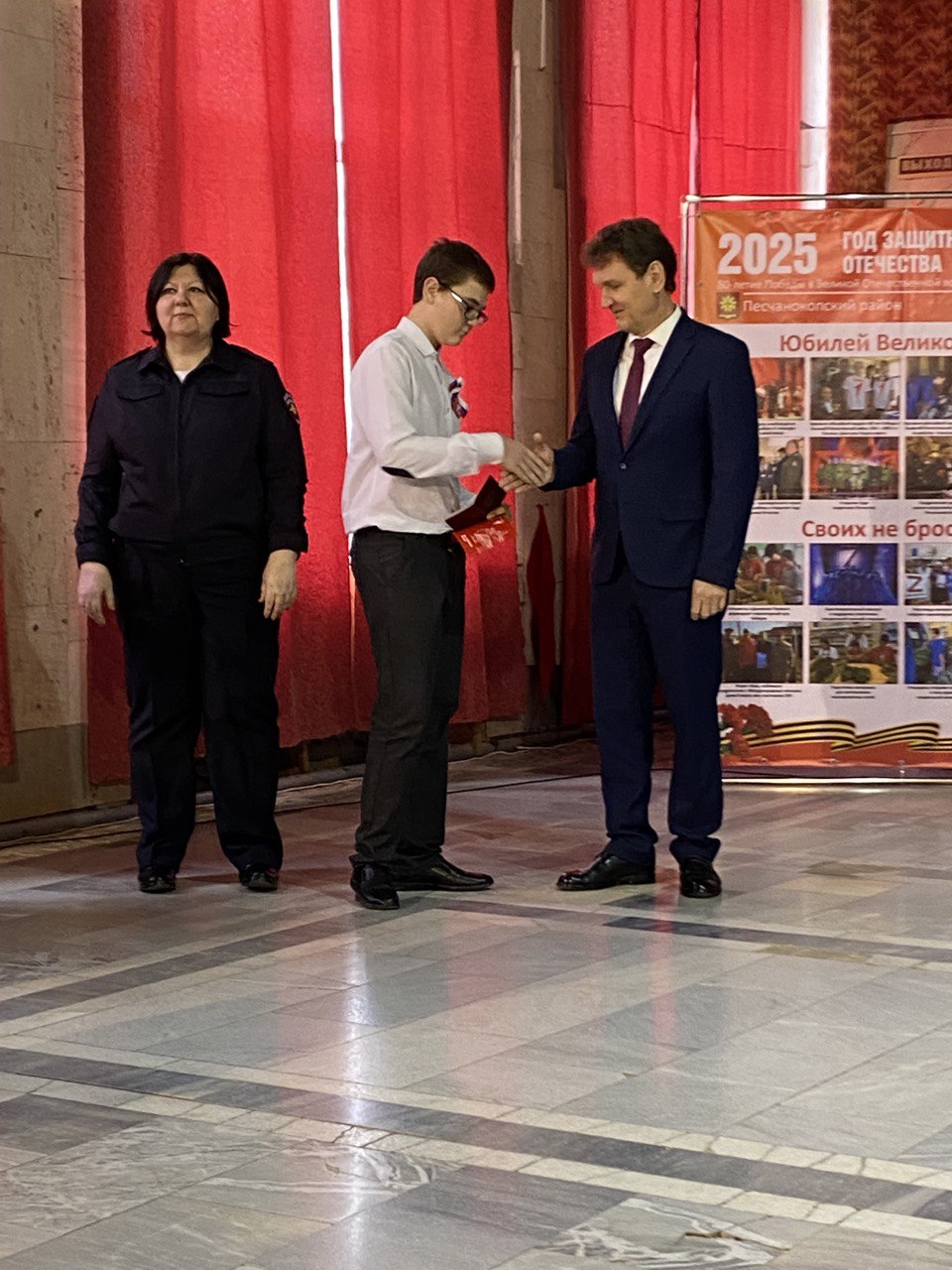 12.12.202512 декабря отмечается День Конституции Российской Федерации. В РДК "Юбилейный" прошло торжественное мероприятие, посвященное этой дате. Всех присутствующих поздравила заместитель главы администрации Песчанокопского района по социальным вопросам Придворова Н.В. В этот день юноши и девушки, достигшие 14-летнего возраста в торжественной обстановке получили самый важный документ - паспорт гражданина Российской Федерации. С этим событием их поздравил председатель территориальной избирательной комиссии Песчанокопского района Бабин Э.Н. который в своём выступлении отметил: "От каждого из Вас, от ваших дел и поступков будет зависеть, каким будет будущее нашего района и России в целом. Будьте достойными гражданами Великой России!" Праздничное мероприятие сопровождали своим выступлением творческие коллективы РДК "Юбилейный".