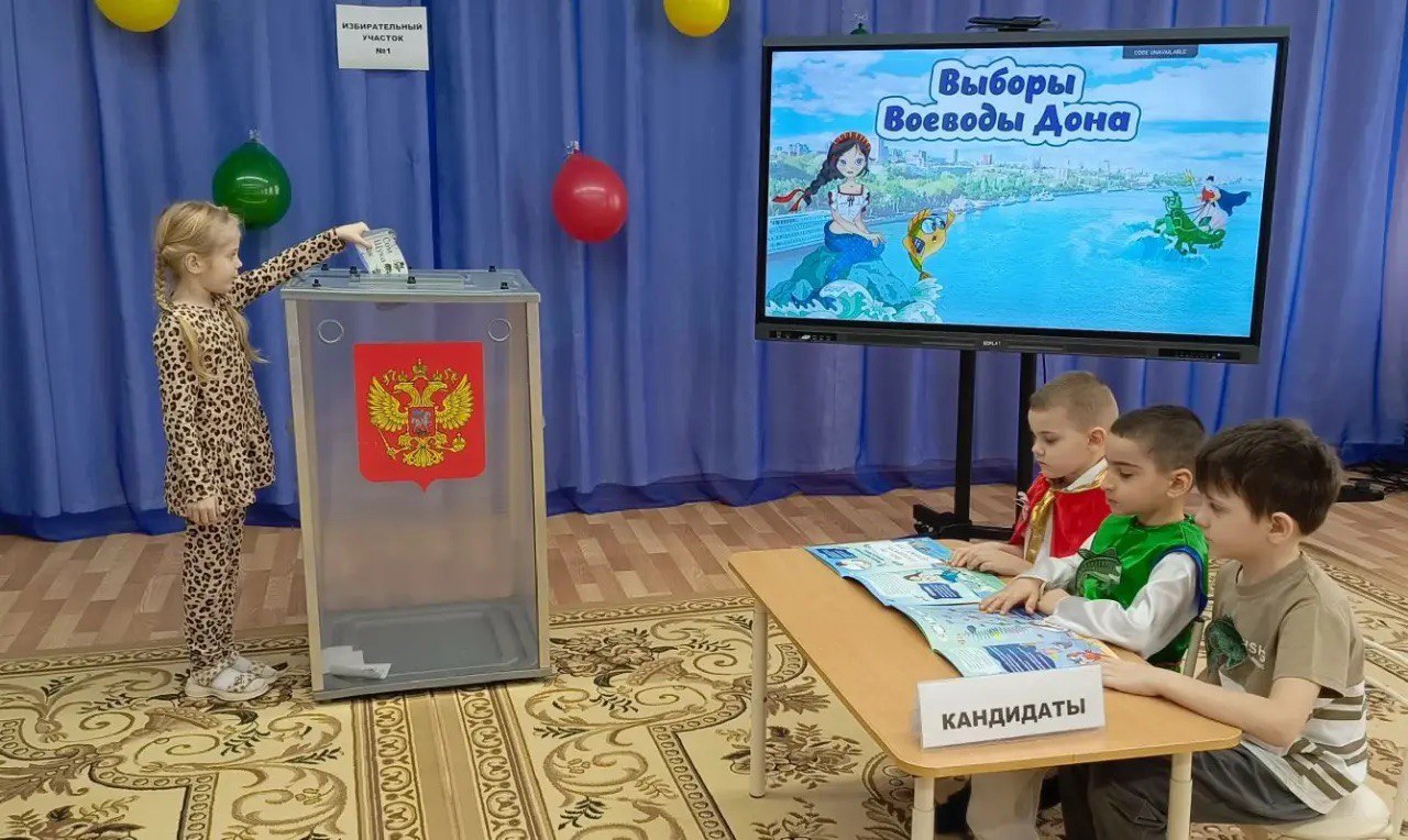 Ребята совершили путешествие в подводный мир Дона. В игровой форме дети получили навыки юных избирателей и возможность попробовать себя в этой роли. Игра прошла увлекательно и интересно. С особой ответственностью дошкольники заполнили удостоверения почетных наблюдателей. Выслушав предвыборные речи кандидатов, дети проголосовали, по своему усмотрению. Большинством голосов Воеводой Дона был выбран Сом. Теперь он будет защищать жителей Дона и помогать Нептуну в управлении Подводным царством. Воспитанники узнали много нового о том, что такое выборы, зачем они нужны, как они проводятся, а также почувствовали себя взрослыми и ответственными гражданами своей страны-будущими избирателями.